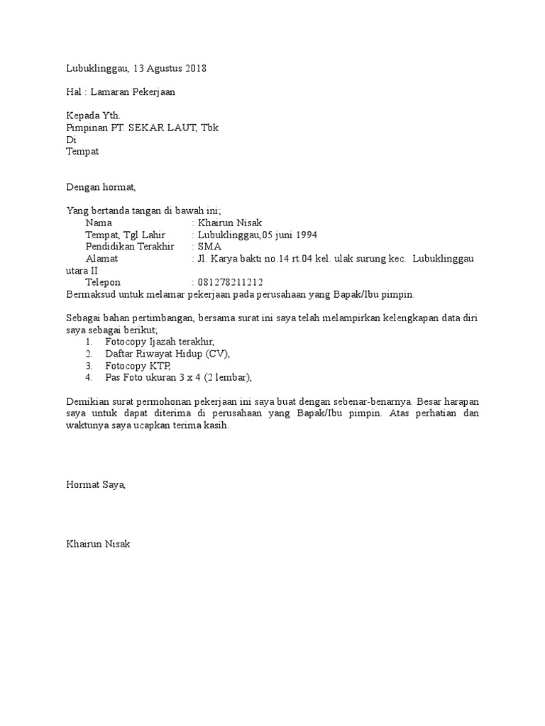 Contoh Surat Lamaran Kerja Pdf